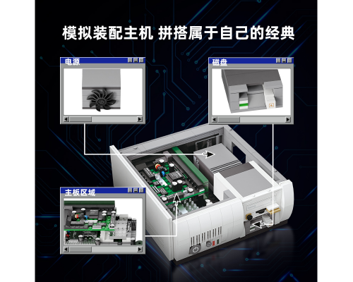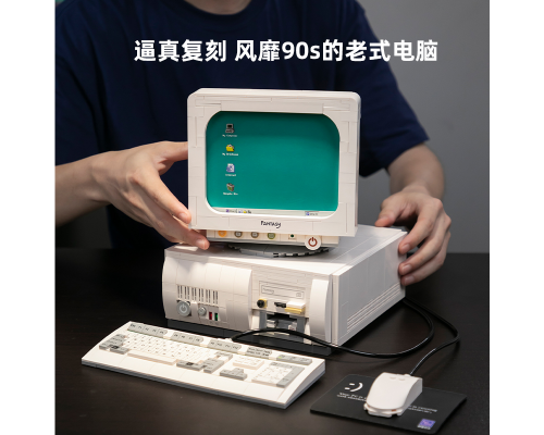 【拼奇積木】拼奇復古電腦造型辦公室益智拼搭積木玩具擺件