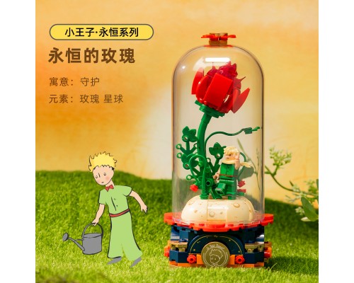 【拼奇積木】拼奇小王子積木永恒玫瑰防塵罩辦公室擺件玩具積木