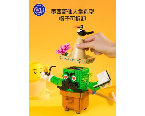 拼奇童趣仙人掌扭蛋機積木拼裝玩具益智顆粒潮玩擺件