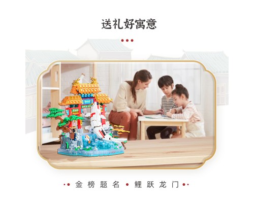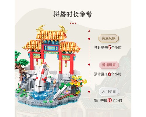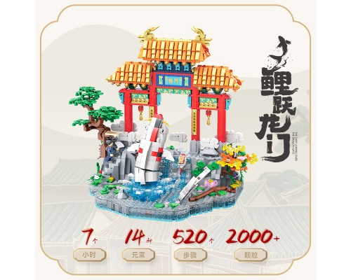 拼奇鯉躍龍門積木成人高難度巨大型中國建筑拼裝拼插模型男孩玩具