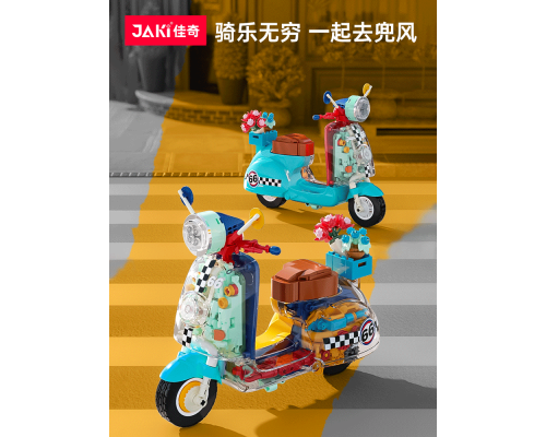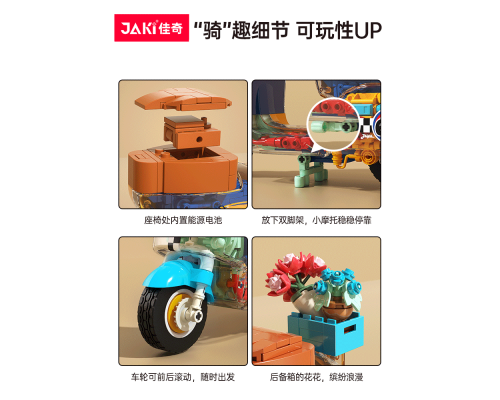 JAKI佳奇積木超級愛豆摩托車拼裝玩具擺件2024新款生日禮物