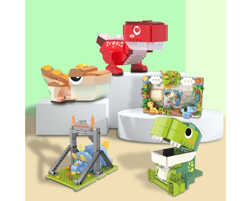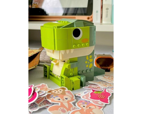 JAKI佳奇小恐龍積木疊疊樂桌面擺件收納筆筒相框玩具組裝禮物