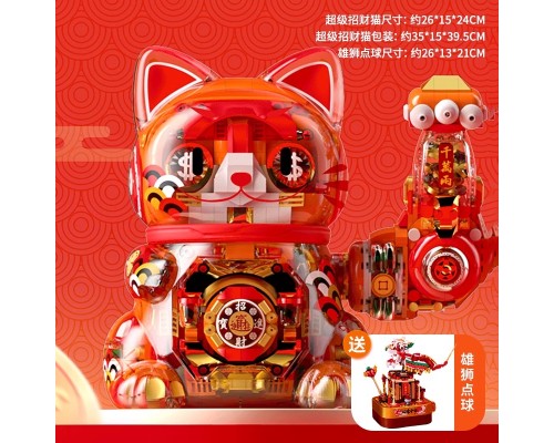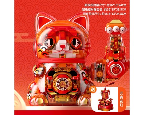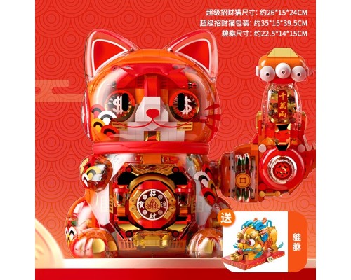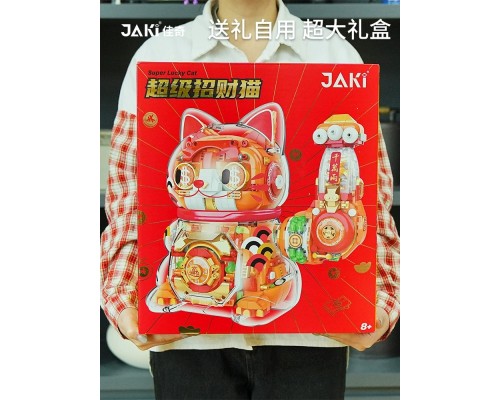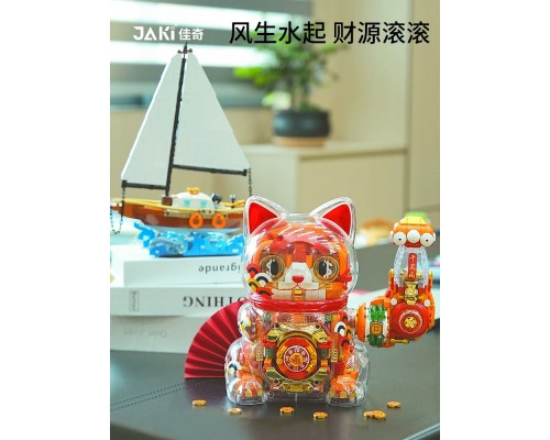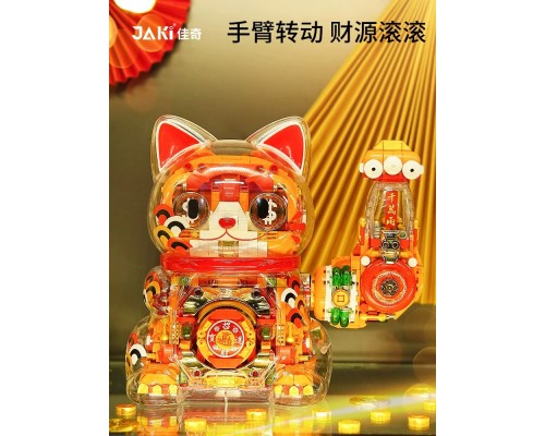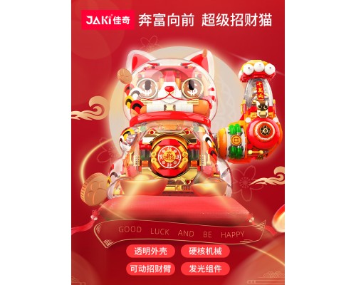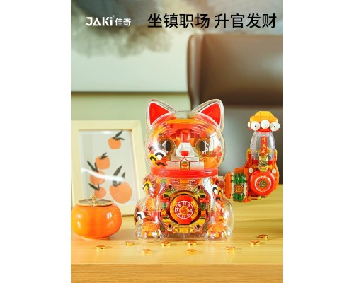 JAKI佳奇積木招財貓國潮手辦擺件益智拼裝玩具新年圣誕男女孩禮物