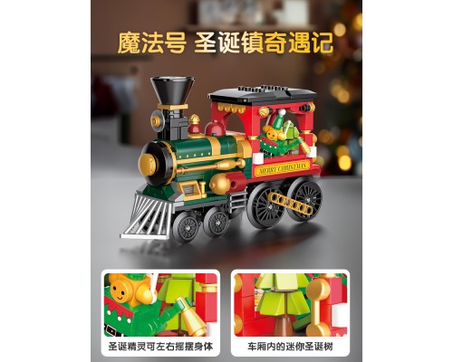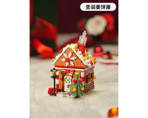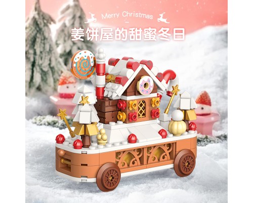 JAKI佳奇積木圣誕樹桌面擺件男女孩禮物拼裝姜餅屋小火車