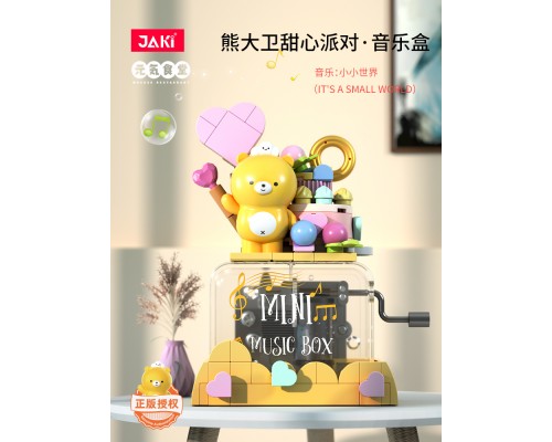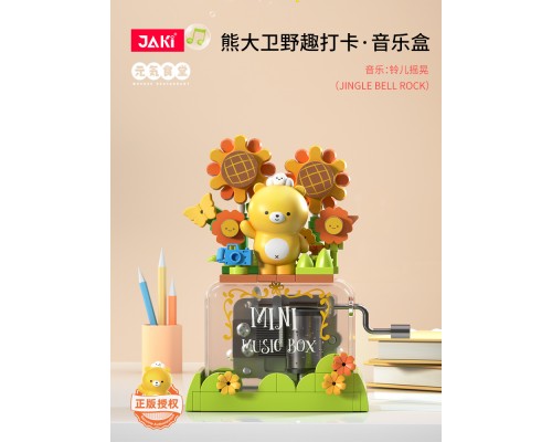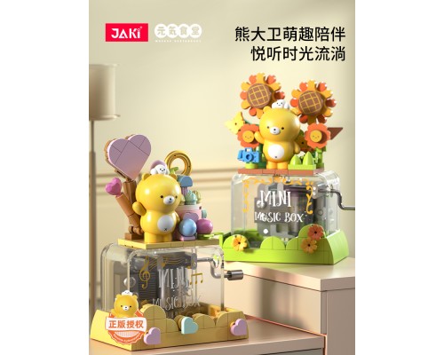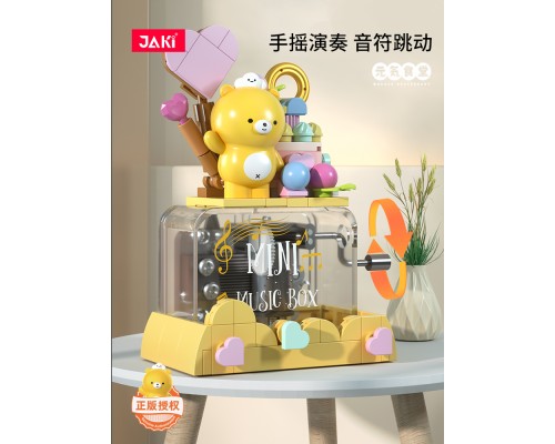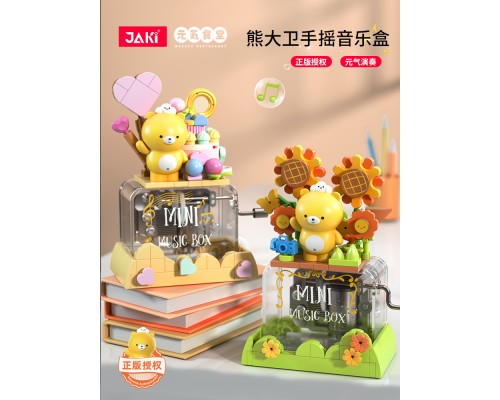JAKI佳奇積木熊大衛手搖音樂盒益智拼裝玩具禮物擺件