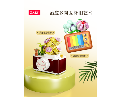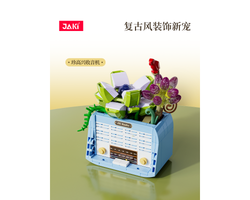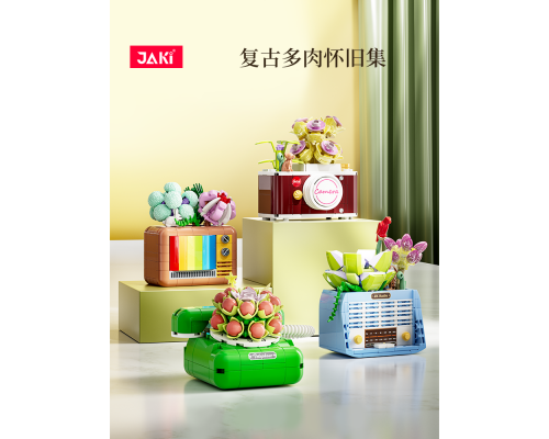 JAKI佳奇積木復古多肉植物盆栽益智拼裝女孩玩具生日禮物電器擺件