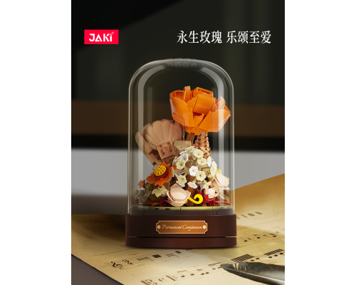 JAKI佳奇積木永生花音樂盒八音情侶禮物情人節浪漫旋轉玫瑰擺件女