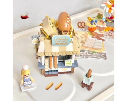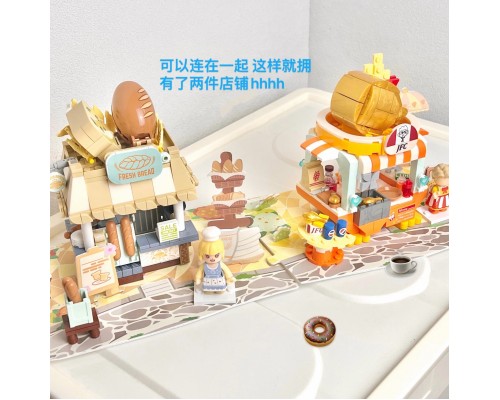 JAKI佳奇積木美食街景咖啡店面包店益智拼裝玩具擺件禮物販賣美好