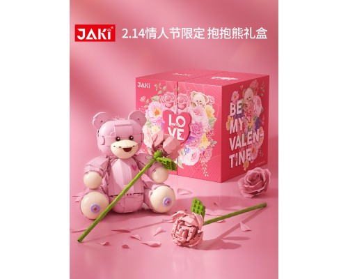 JAKI佳奇積木粉色泰迪熊禮盒可愛女生玩具創意情人節禮物送女朋友