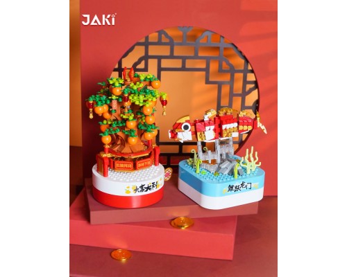 JAKI佳奇積木國潮新年禮物元宵花燈八音盒益智拼裝音樂盒擺件