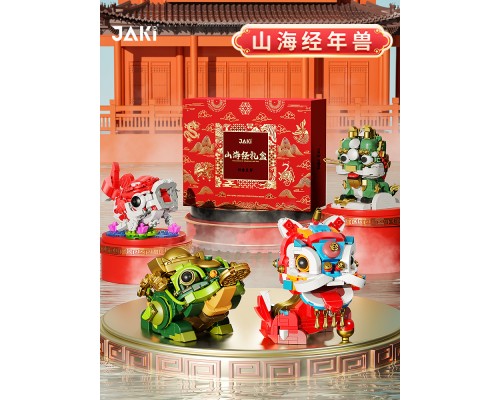 JAKI佳奇積木山海經神獸拼裝擺件國潮國風新年禮物益智玩具禮盒龍