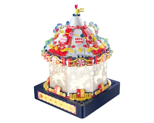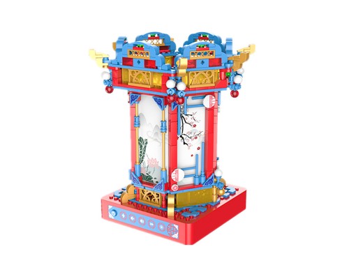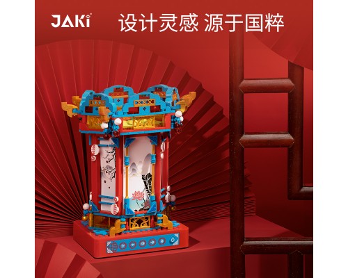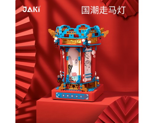 JAKI佳奇積木創意擺件國潮走馬燈光旋轉電動音樂盒拼裝玩具禮物