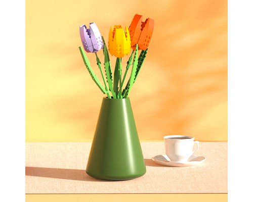 JAKI佳奇積木花束花瓶桌面擺件永生花朵拼裝玩具女神節禮物送女友