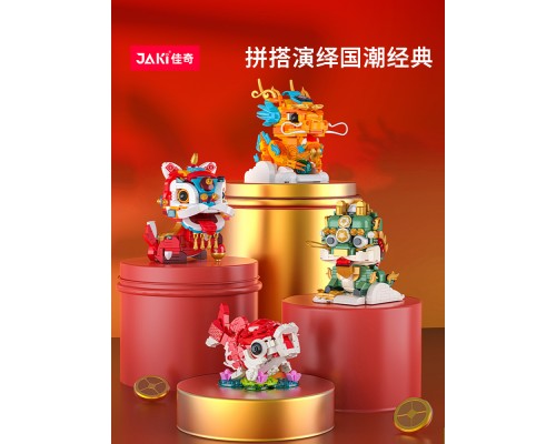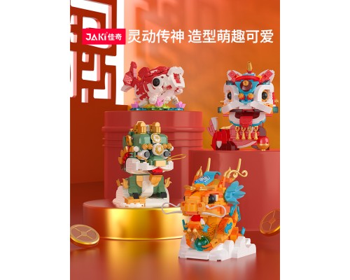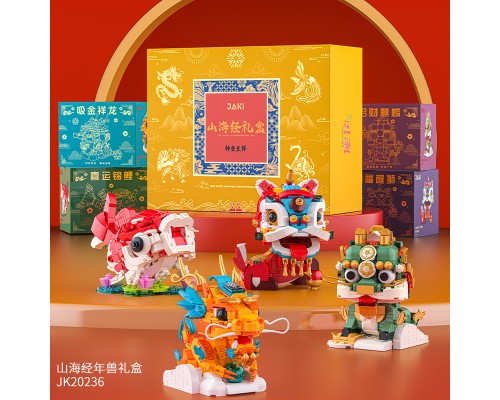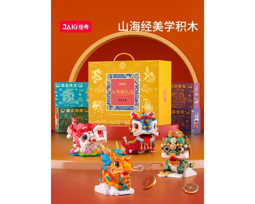 JAKI佳奇積木山海經神獸禮盒國潮醒獅男女擺件拼裝玩具新年禮物