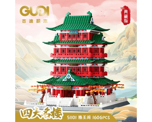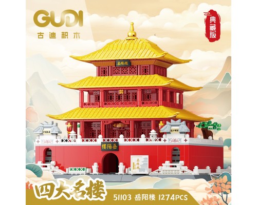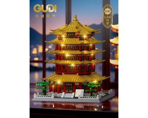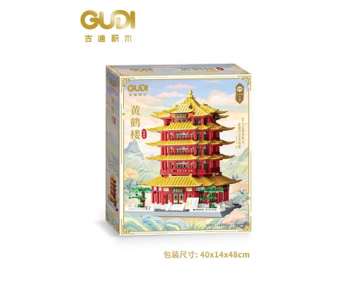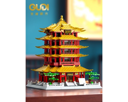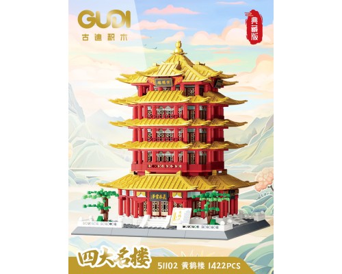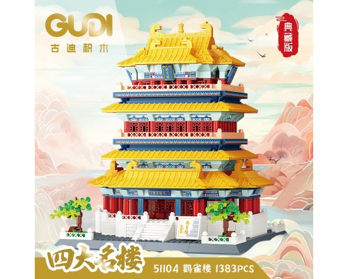 古迪積木益智力拼裝四大名樓玩具拼插拼圖黃鶴樓模型禮物