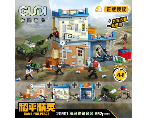 古迪積木絕地求生和平精英場景模型吃雞人仔拼裝玩具