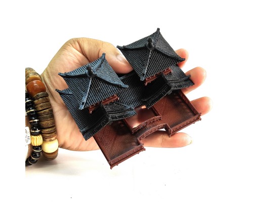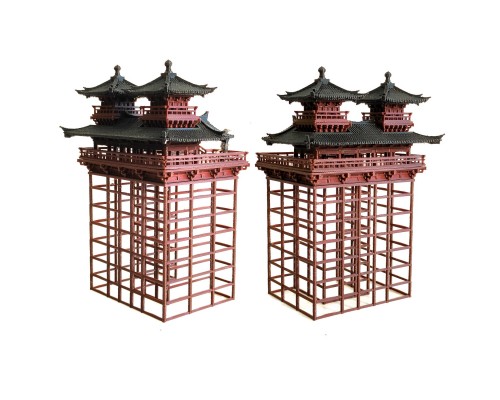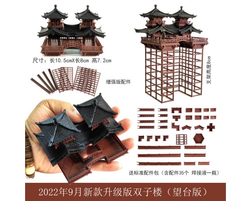 新品中式造景盆景國風建筑模型魚缸水陸缸用擺件雙子樓古建