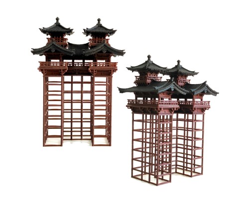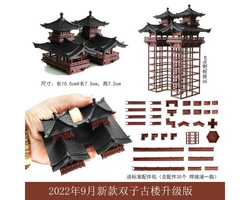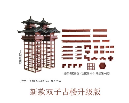 古建造景盆景國風建筑模型魚缸水陸缸用擺件轉角古樓雙子樓
