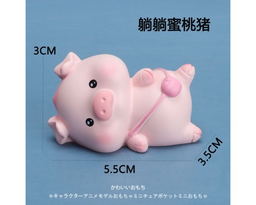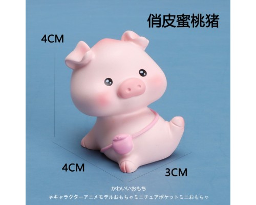 可愛桌面車載擺件豬豬蜜桃模型迷你汽車配件樹脂