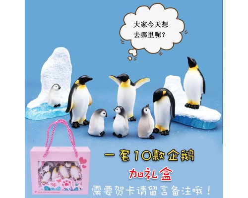 迷你仿真動物場景靜態擺件可愛小企鵝套裝認知卡通小公仔模型玩具