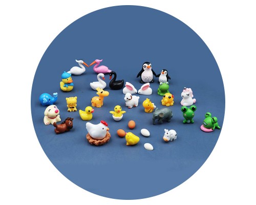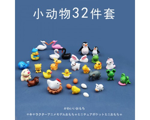 仿真小動物模型靜態擺件微景觀沙盤配件小兔小羊雞荷花小象馬鴨魚