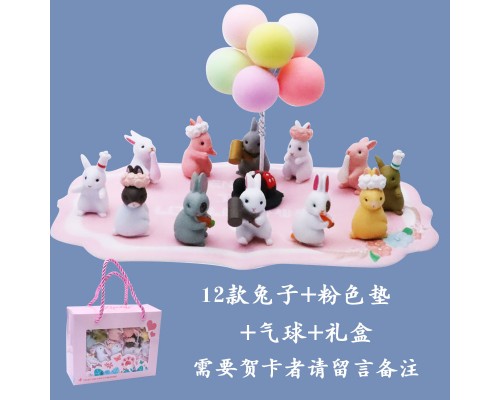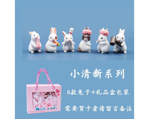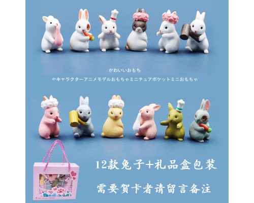 日式仿真可愛小動物小兔子卡通模型擺件迷你玩具微景觀微縮模型