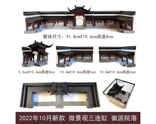 古建筑戶外造景模型徽派庭院微景觀用擺件魚缸水陸缸3D打印