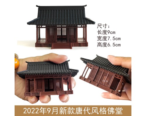 古建微景觀魚缸水陸缸造景唐代風格佛堂建筑模型擺件3D打印