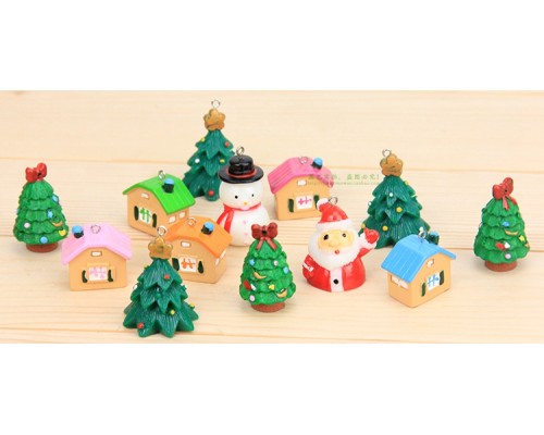 圣誕樹圣誕老人雪人模型樹脂小房屋道具農房小屋擺設掛飾件鑰匙扣