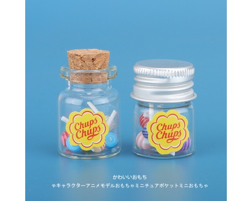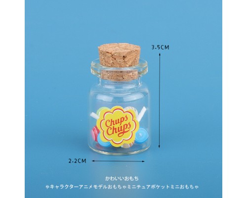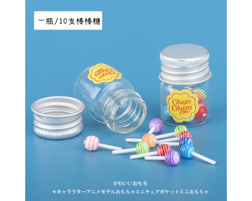 可愛玻璃瓶仿真迷你七彩棒棒糖罐裝娃娃屋超市擺件