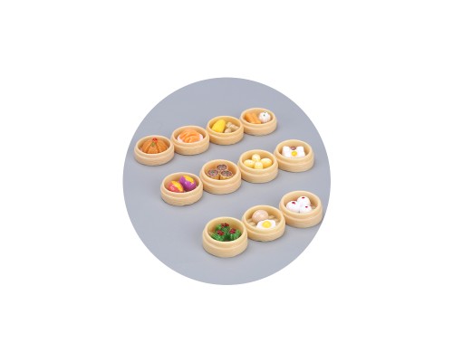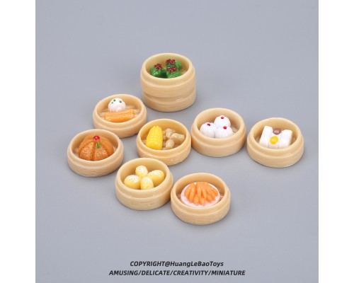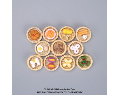 食玩仿真蒸籠點心模型迷你微縮小籠包叉燒包過家家小食物玩具擺件