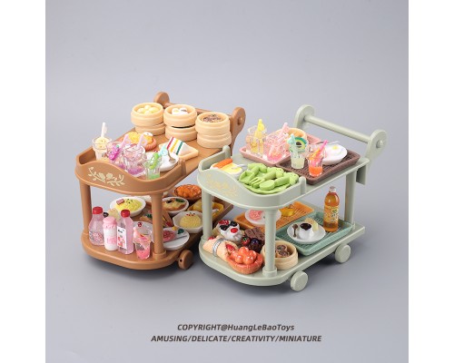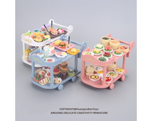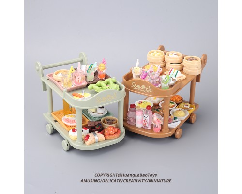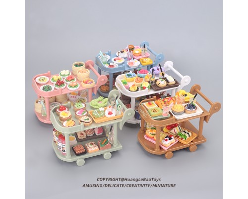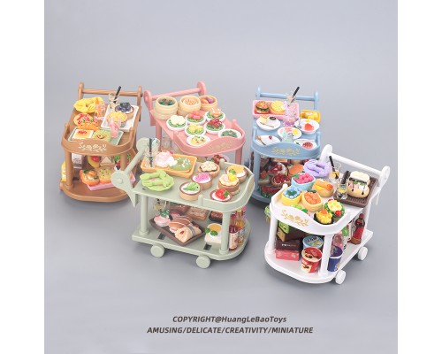 食玩小餐車手推車微縮廚房套裝過家家迷你食物擺件娃娃屋模型玩具