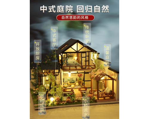 創意復古國風手工拼裝diy小屋竹溪水苑庭院別墅模型送男女友禮物