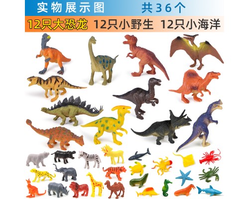 仿真野生動物模型動物園恐龍玩具套裝大象老虎大猩猩擺件