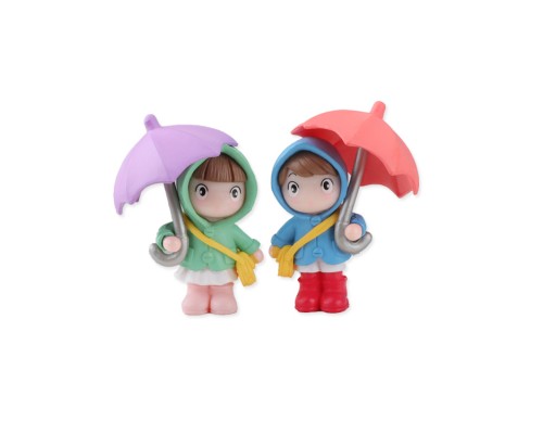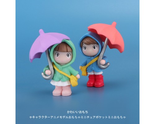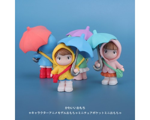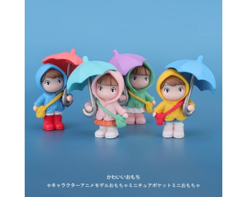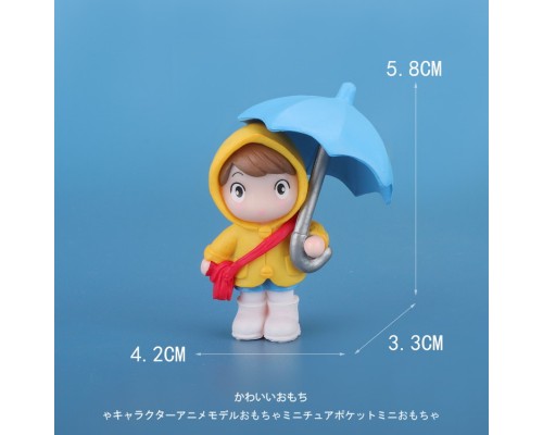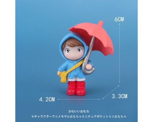 可愛穿雨衣小女孩卡通模型微景觀蛋糕桌面汽車擺件公仔玩偶小玩具