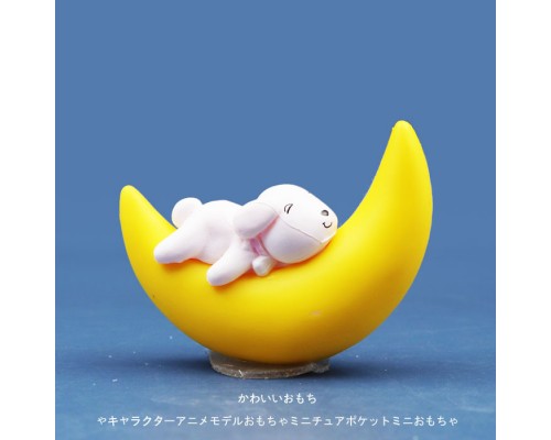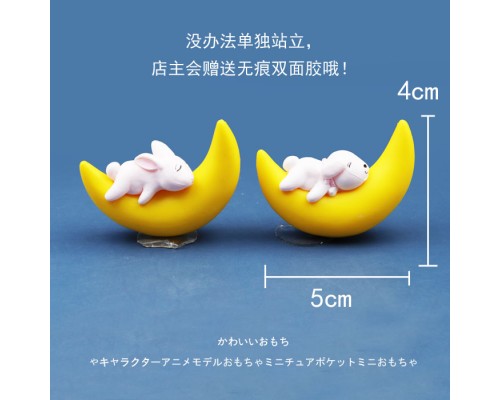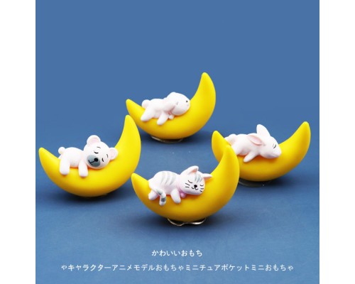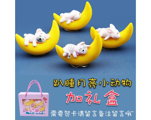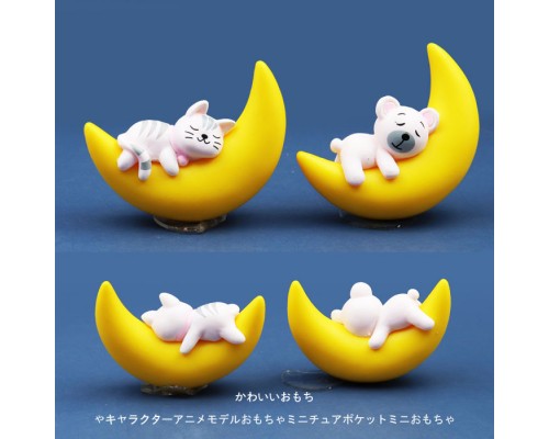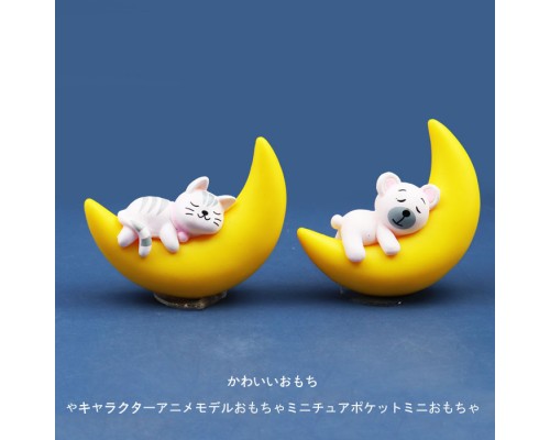 仿真月亮睡覺小狗/小貓/小兔子卡通Q版可愛公仔手辦模型玩偶擺件