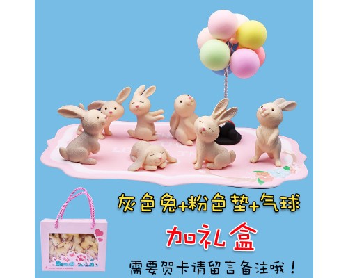 Q萌仿真可愛小兔子桌面擺件卡通模型微景觀滴膠微縮仿真動物公仔