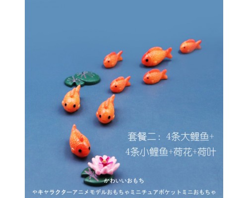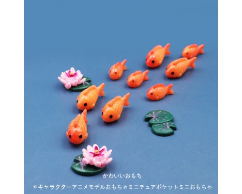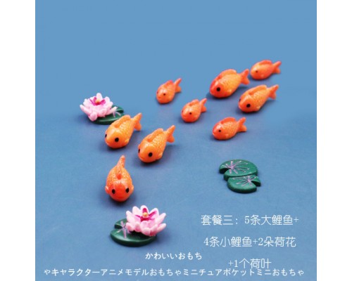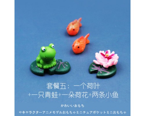 仿真小鯉魚荷花青蛙荷葉小動物模型小擺件微縮模型迷你海底微景觀