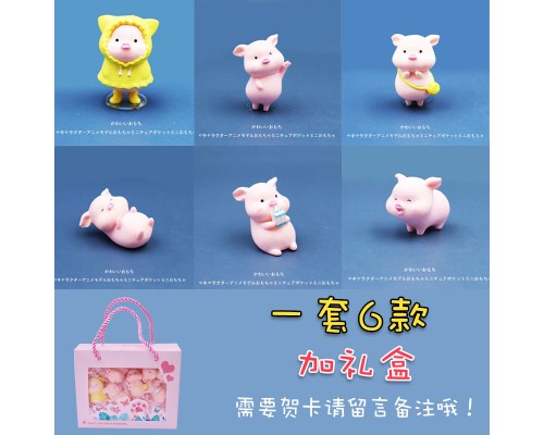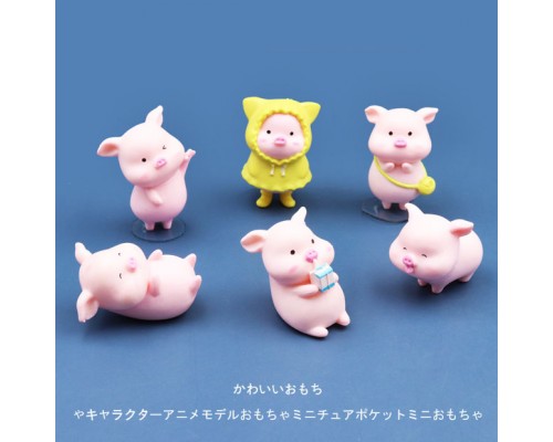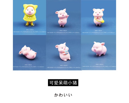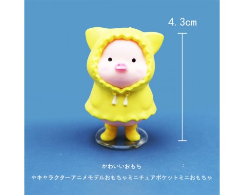 迷你可愛雨衣小豬微縮玩偶卡通小公仔玩具汽車微景觀擺件仿真動物
