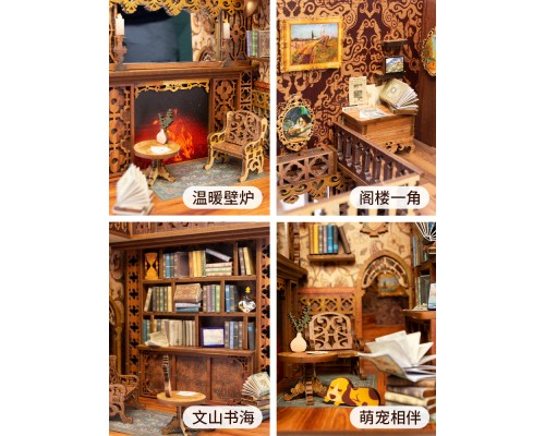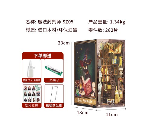 木質拼裝永恒書店風雅宋朝書立解壓制作diy親子手工模型實用禮物