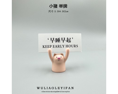 舉牌可愛小豬擺件迷你桌面創意招財祝福好玩有趣日式雜貨貓勵志女
