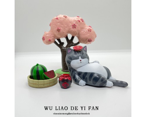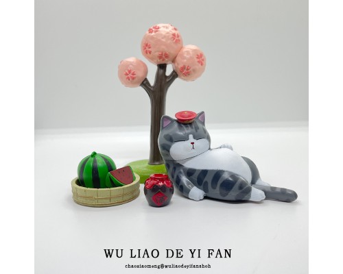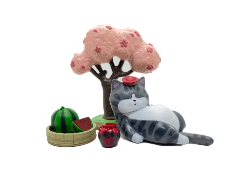 吾皇睡覺+矮櫻花樹+西瓜+酒壇