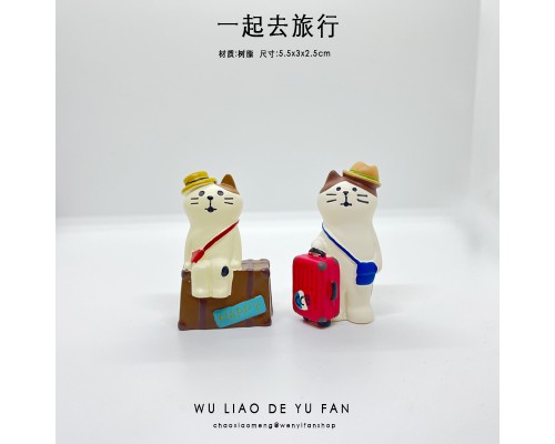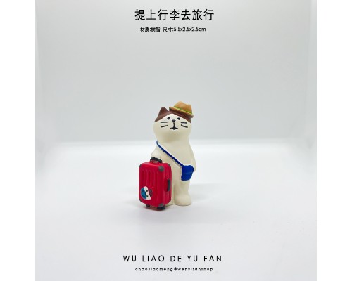 無聊帶上行李箱去旅行治愈可愛貓咪汽車日式桌面迷你車載小擺件女