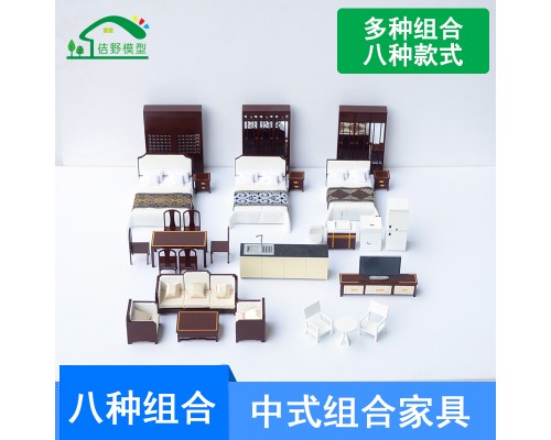 沙盤材料室內迷你中式家具沙發床衣柜餐桌椅廚房衛生間模型1/25