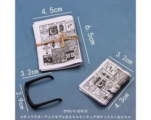 迷你玩具過家家娃娃屋配件食玩場景模型迷你一捆報紙眼鏡拍攝道具