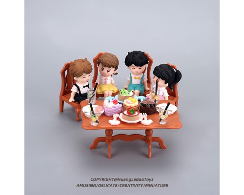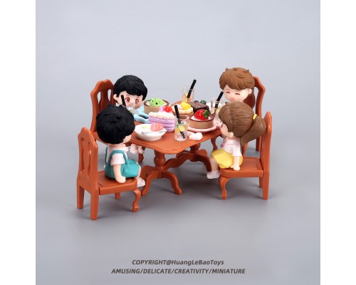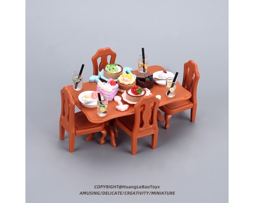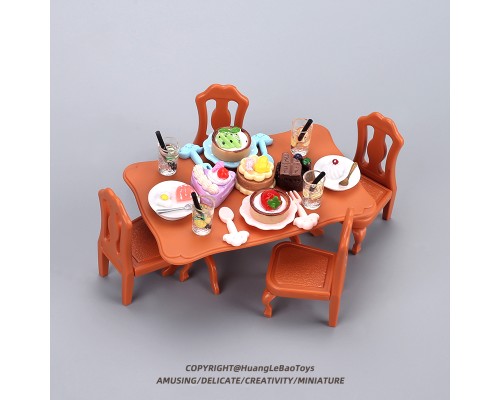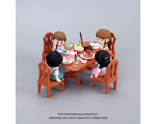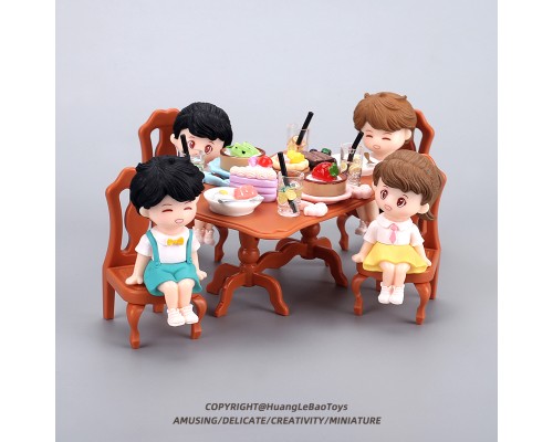 一張桌+4椅子+滿桌子食物+4娃娃(如圖) (NT213)