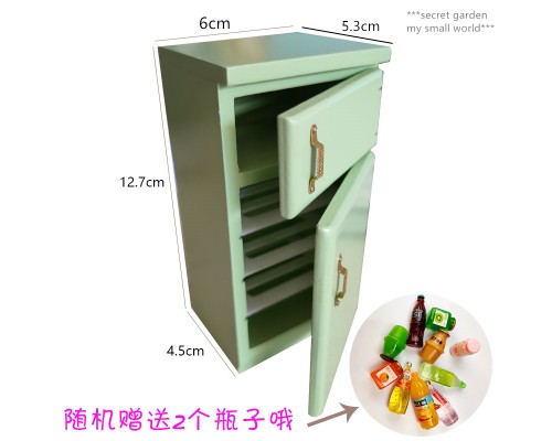 淺綠色冰箱模型+隨機2個瓶子 (NT162)