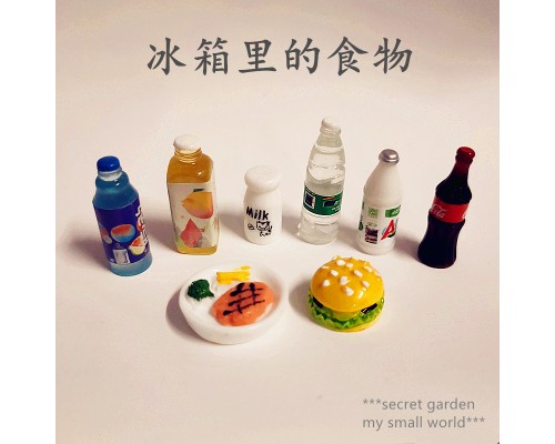 迷你娃娃屋家具微縮模型飲料漢堡食玩汽水廚房場景過家家白色冰箱
