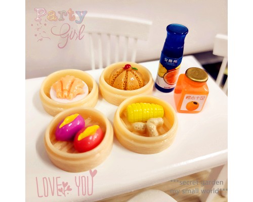 芭比桃子兵人小布迷你 食物小模型 仿真蒸籠娃屋食玩配件道具擺件
