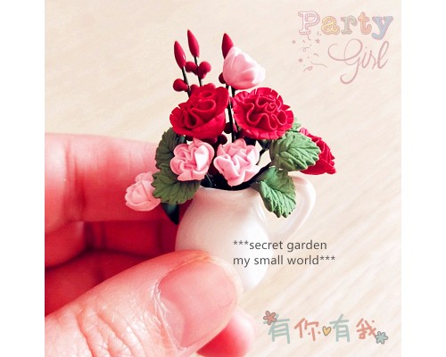 娃娃屋dollhouse家具場景迷你花朵瓶擺配件微縮袖珍食玩模型綠植